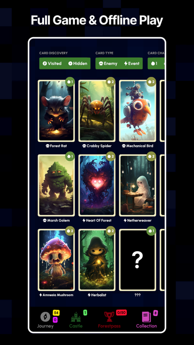 Get ready for a swiping roguelite cardventure packed with 300+ cards! Navigate through foes, surprises and mysteries, where your swipes determine the fate of the forest. Every swipe in Cardara — left, right, up, down — unfolds more choices and sets off a chain of unique and unpredictable combinations. Each journey is a unique experience! Slay enemies and collect gems to level up your very own Castle. Gameplay Features: Offline play: There is no need for an internet connection, wow! Nevertheless, your progress is always backed up, we got you covered. Forestpass: Unlock 25 unique cards and earn enormous amount of gems by completing brand new Season 2 of our Forestpass (completely free, by the way)! Castle: Level up your Castle by completing assignments! Purchase useful buffs for your upcoming journeys for gems (enjoy no pesky in-app purchases). Collection: Explore a vast collection of 300+ cards, all just a swipe away. Unlock them all before we add some more! Chaos Level: Beware of the rising chaos level in Cardara forest. With each move you make, the forest grows more dangerous. The more you play, the higher the stakes, adding an exciting twist to your adventure. Compass: Use The Compass to guide your choices. It helps you pick the best direction for your next swipe, adding a layer of strategy to your journey. With enemies to defeat and allies to find, each swipe is crucial. Can you outsmart the foes and save the forest? It's time to find out! Level up your very own Castle and become a hero of Cardara! Start your adventure now!