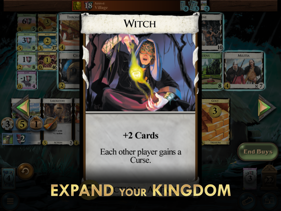 Expand a small kingdom to a mighty Dominion! Play the Spiel des Jahres winner beloved by millions of boardgame hobbyists around the world. This is the officially licensed implementation. REIGNING DECKBUILDER Discover the game that defined a genre, Dominion was first to popularize deck-building and remains a staple of tabletop. GROW YOUR KINGDOM Collect as many Victory Points as you can by building a powerful deck. Your deck starts out a small sad set of Estates and Coppers, but you hope that by the end of the game it will be brimming with Gold, Provinces, and the inhabitants and structures of your kingdom. BUILD YOUR ENGINE Choose wisely among the 10 cards available in the tableau to create the strongest combos to dominate your opponent. COLLECT ALL EXPANSIONS Make your games more exciting with additional cards and rules from up to 15 expansions including the recent Plunder expansion! NEAR INFINITE VARIETY Over one hundred thirty-two septillion possible Kingdom combinations, 500+ cards, 15 and counting expansions, and ongoing promo packs make Dominion one of the most extensive and replayable boardgames in the hobby. COMPETE WITH THE COMPUTER Sharpen your skills with solitaire style solo play against a robust AI, with four levels of difficulty. Our innovative AI learns through self-play. Earn Achievements and win in Recommended Sets against each AI level. PLAY FRIENDS OR STRANGERS Play with up to 6 players online through your device or pass and play among your friends. Join ranked or unranked matchmaking, with realtime and asynchronous modes. Set up a private table for a family game, challenge a stranger in the lobby, or invite a friend! DAILY PUZZLE A daily ritual to relax with over a cup of coffee. Try the Daily Dominion, a free puzzle level available to players around the world. Practice your strategy to keep up a winning streak and climb the leaderboard. CROSS-PLATFORM PLAY Play from any supported device, whenever you want, after verifying your email in-game. Join games with opponents on platforms other than your own. JOIN THE COMMUNITY With an active Discord and online community, make new friends or challenge new people to a game. Export and share kingdoms and game summaries to compare strategies. FREE TO PLAY Download the game that started it all for free! The base set of Dominion is available at no charge. Try the rotation of expansion cards in the Daily at no cost once per day. Jump into a lobby game with expansions enabled to try before you buy. Only the host needs to own the expansions. INTRODUCTION TO TABLETOP Learn the ropes in this easy to pick-up, hard to master title. Play one of the most highly regarded strategy tabletop games of all time through our simple tutorial. The core loop is easy to follow, but offers a wealth of strategy to explore. • 1- 6 player support • Five-hundred plus cards • Solo play against 4 AI difficulties • Async & real-time multiplayer • Ranked & unranked matchmaking • Lobby & Private game tables • Cross platform multiplayer • Cross platform purchases • Daily challenge • Challenging AI that learns through self-play • Recommended Sets • Customize, save & share Kingdoms • Achievements, Stats & Leaderboards • Pass & Play mode • Automated score-keeping & hints • Smart-play options to streamline gameplay • Jumbo mode for readability on phones • Turbo mode to zoom through games quickly • Tutorial & Rules • 4 languages: English, Japanese, German, French • 15 expansions plus three promo packs